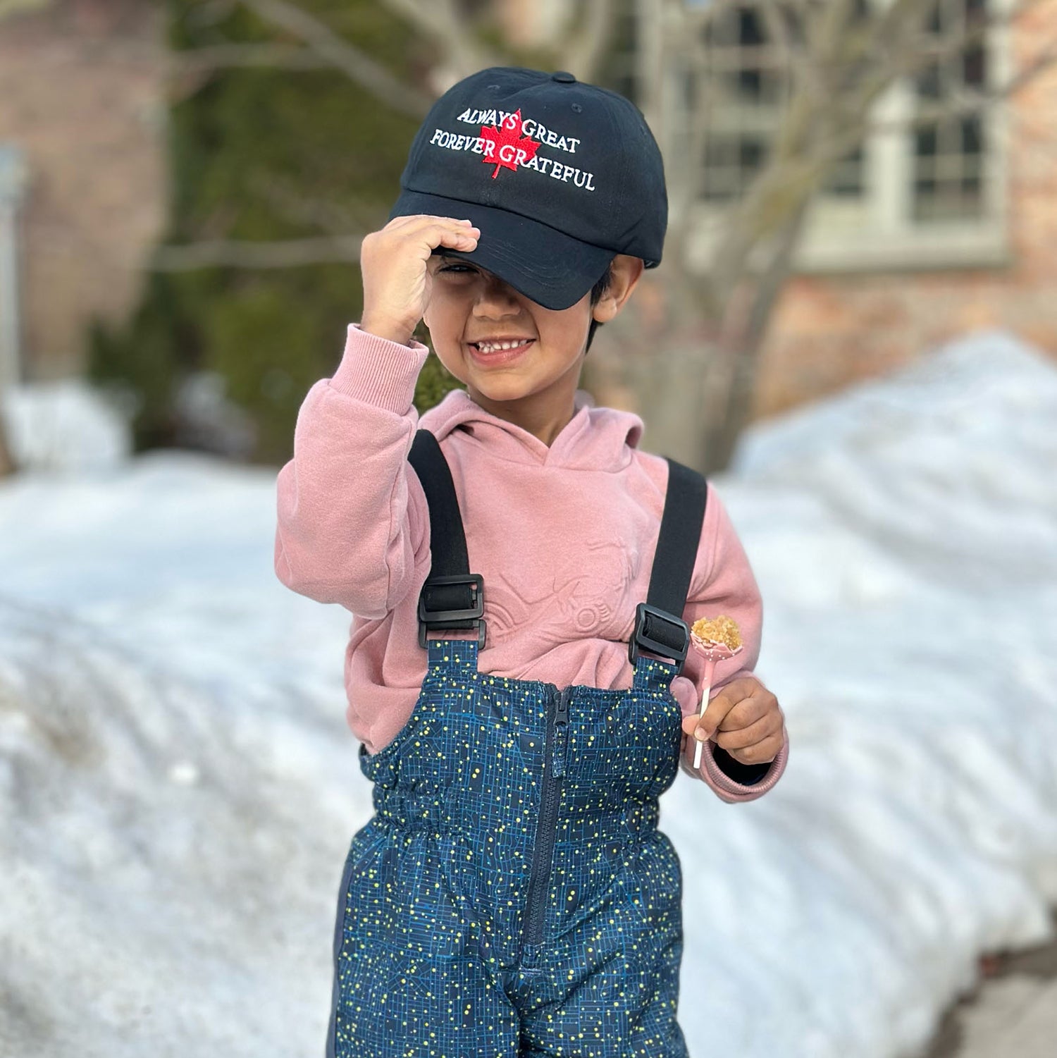 Our journey started in the winter of 2024 on a family Caribbean cruise. Amidst a sea of red American caps, our four-year-old son wanted one for himself. We promised him something better, something Canadian. Back home, we designed a cap with the words Always Great. He innocently added, “and also grateful,” inspired by a bedtime story on gratitude. Together, the phrase Always Great, Forever Grateful captured what it means to be Canadian: confident yet humble, proud yet kind.