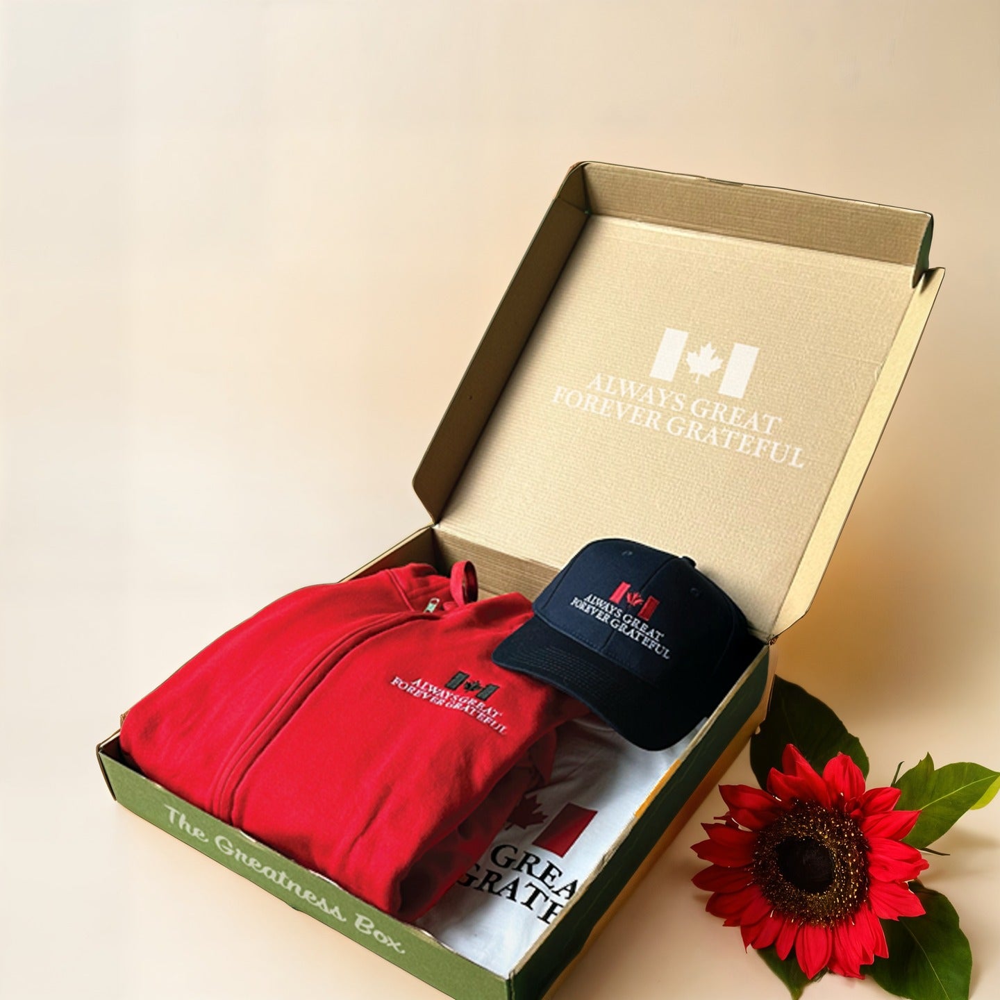 Around the same time, with rising US tariff talk and “51st state” rhetoric, we doubled down on our commitment to Canada. We launched the Greatness Box — a collection of Canadian-made merchandise and symbols of pride. Though our fundraising attempt fell short, it gave birth to something greater: a brand built to honour Canadian excellence, heritage, and craftsmanship.